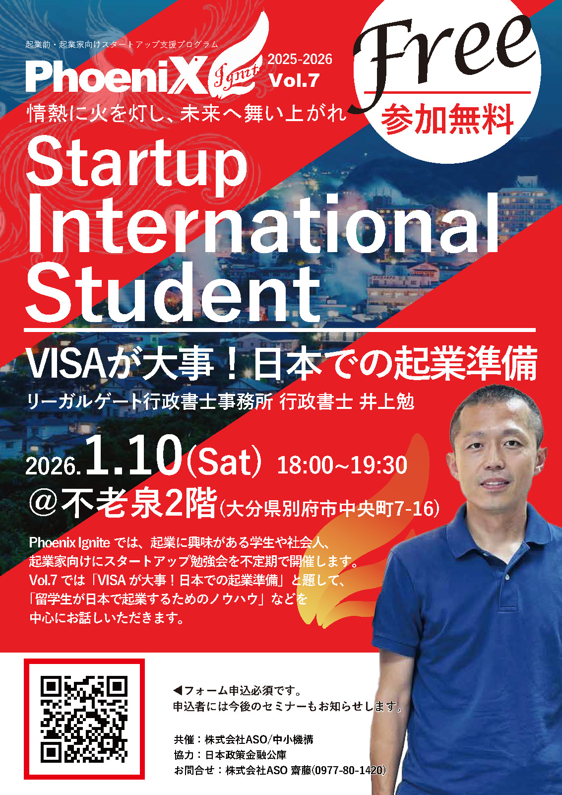 Startup “International Student”起業前・起業家向けスタートアップ支援プログラムPhoeniX Ignite 2025-2026 Vol.7『VISAが大事!日本での起業準備』